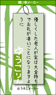 ゆうこりん「優しくした老人が実は大金持ちでお礼が凄いことになりますように」