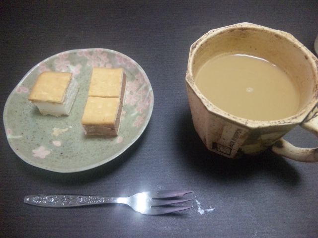デザート シュンライが置き忘れていったクッキーアイスサンドとコーヒー