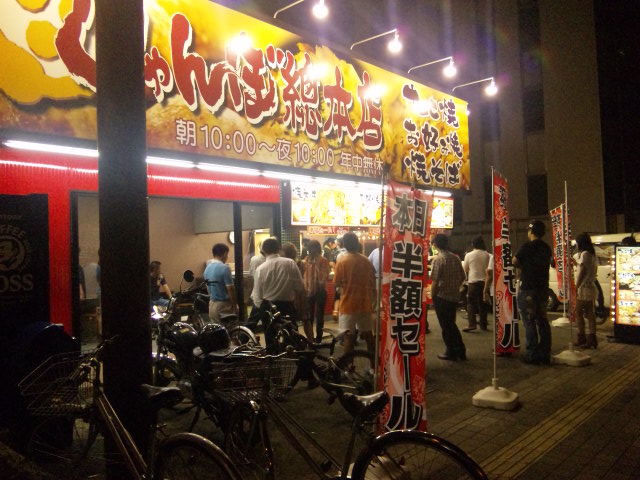 焼きそば 並盛 380円 大盛 500円 半額セール 並盛190円