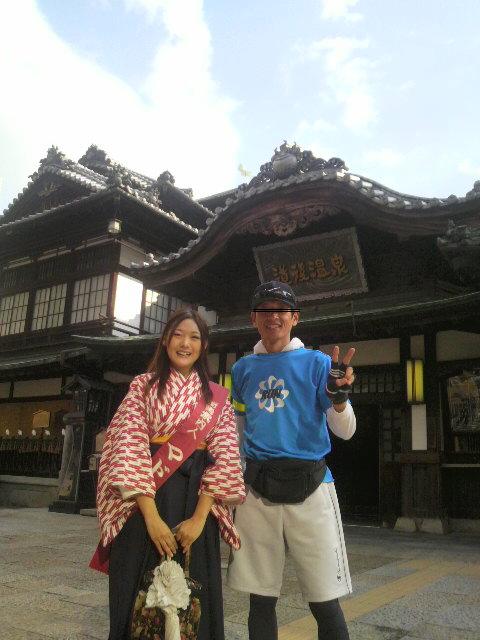 道後温泉前でマドンナと一緒に記念写真撮ったり、