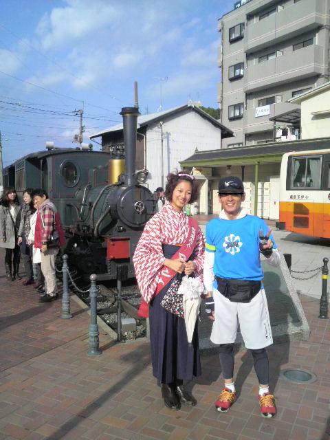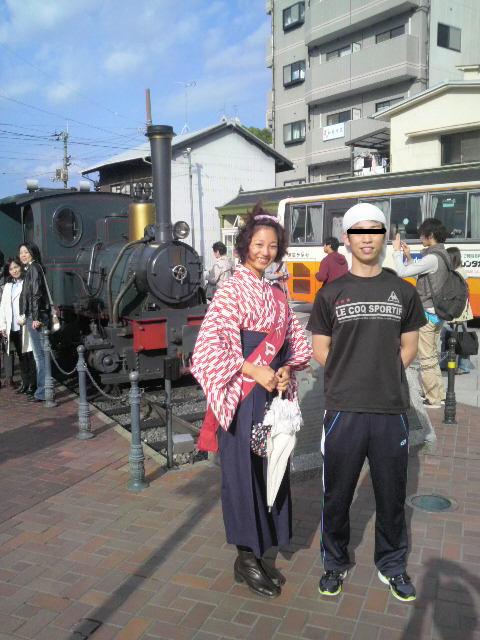 坊ちゃん列車の前でマドンナと一緒に記念写真を撮ったりするわけです。