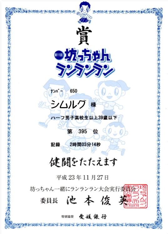 記録 2時間3分14秒 395位