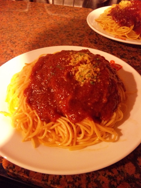 写真の撮り方が下手で、うまく伝わらないけどね、スパゲッティがてんこ盛りなのよ
