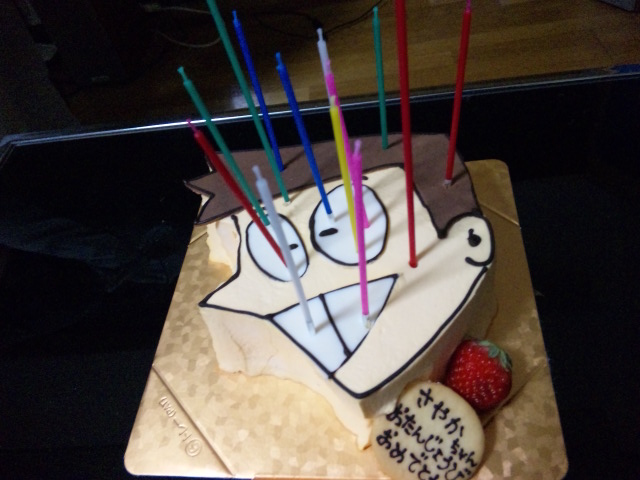 いいでしょ?スネオケーキw( ^ω^)ろうそく刺さりすぎで痛々しいでしょ?w